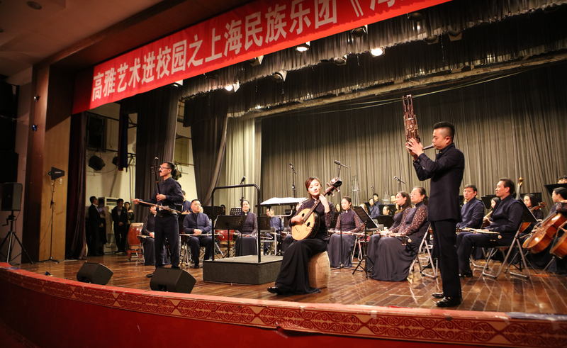 室外雨声淅沥,室内暖意融融。3月27日晚,2019年高雅艺术进校园首场演出《海上生民乐》民族音乐会在徐汇校区大礼堂震撼上演,上海民族乐团的艺术家们为学校师生献上了一场精彩纷呈的视听盛宴。上海民族乐团党总支副书记、副团长朱建新,校党委常委、党委宣传部部长夏江雯和800余名师生共同观看了演出。