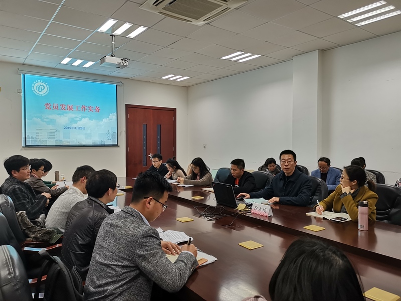 会上,徐永桢围绕党员发展的重要性、我校党员基本情况、党员发展工作程序及党员发展工作纪律等方面展开介绍。他强调,发展党员是基层党建的经常性、基础性工作,必须严把“入口关”,做好党员培育和推优,严格规范党员发展程序,充分发挥制度优势。他表示,我校发展的学生党员数量近几年基本保持在稳定水平,根据基层党建要求,发展党员工作要继续夯实做好,这是我们必须完成的任务。徐永桢还详细讲解了发展党员的基本工作流程,包括入党申请、入党积极分子的确定和培养考察、发展对象的确定和考察、预备党员的接收、预备党员的教育考察和转正五个阶段25个流程的内容,同时提出18个重要的关注点及常见的问题。最后,他强调了党员发展工作的纪律性,提醒大家重视制度、队伍、检查、问责四方面的问题。