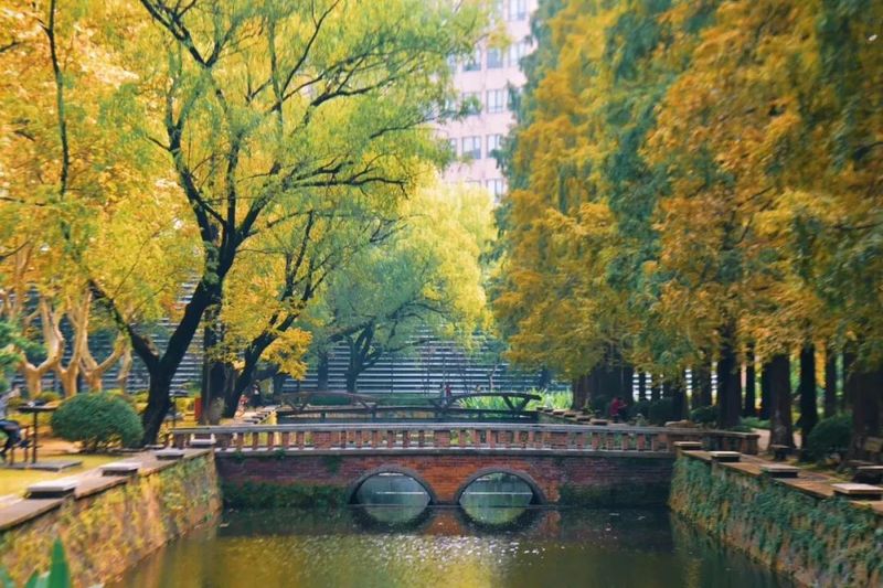 同济除了醉人的樱花美,还有坐落在同心河上别具一格的木桥和石桥,又是一番好风景!