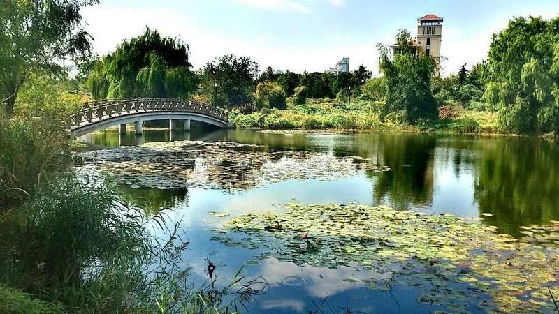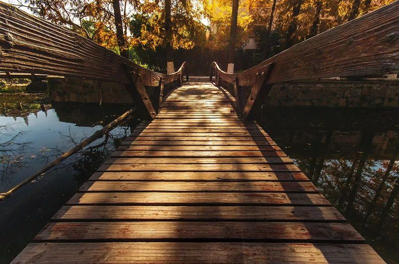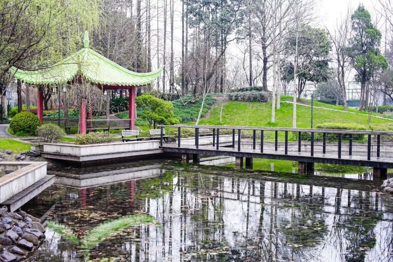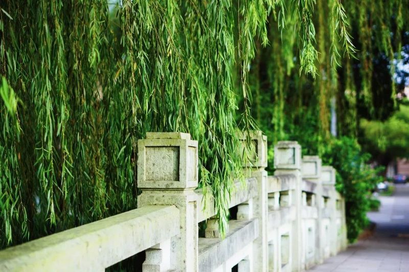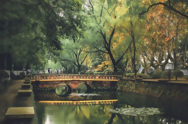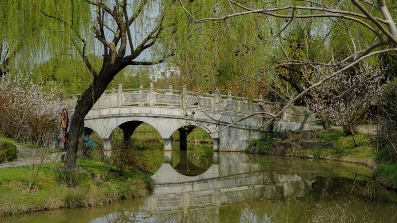 通往对岸的是桥,通往郁郁葱茏的亦是桥。去图文温习的路,吹春天杨柳的风。你轻踏木板的步,池悄映绿意的浓。