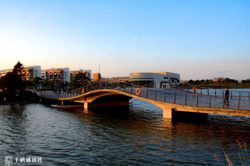 逢山开路,遇水架桥。东华大学松江校区镜月湖是国家生态水利风景区,沿湖架起的多座大小桥梁,不仅连通了镜月湖和张家浜、广富林河,连通了教学区和生活区。