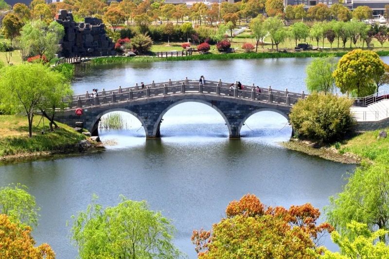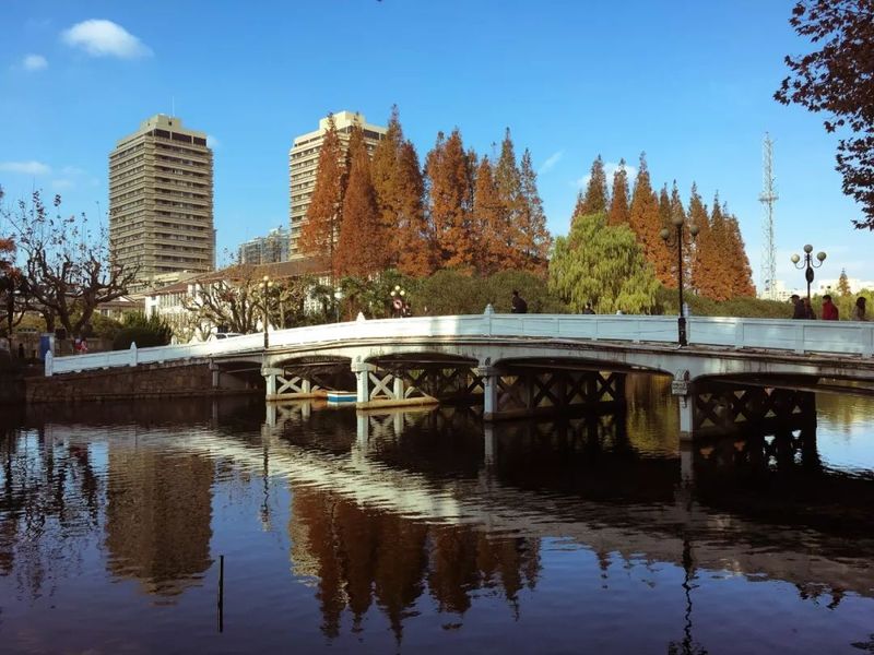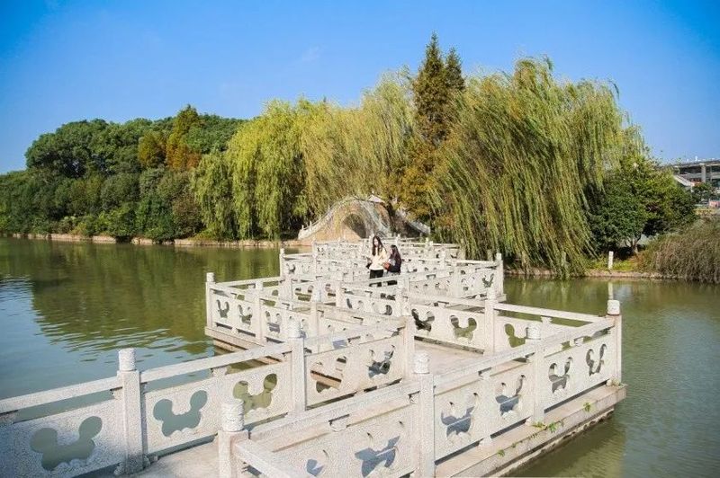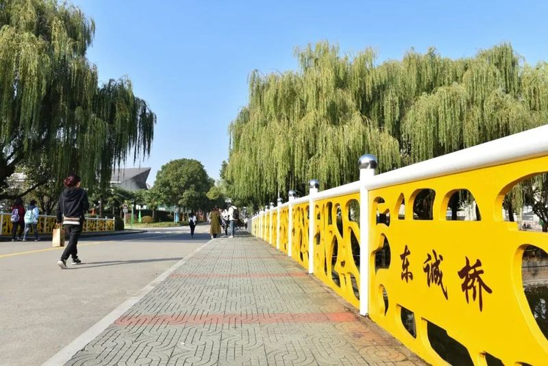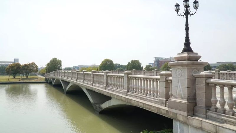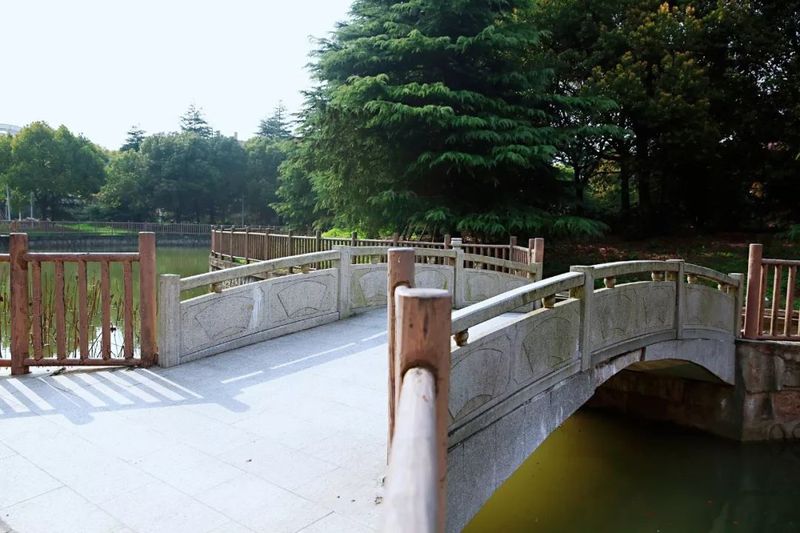 石桥、木桥、铁桥……各种材质的桥卧波碧水间。其中,砺志桥和尚实桥特别取名自东华校训“崇德博学,砺志尚实”。