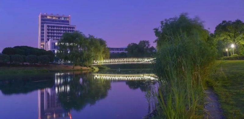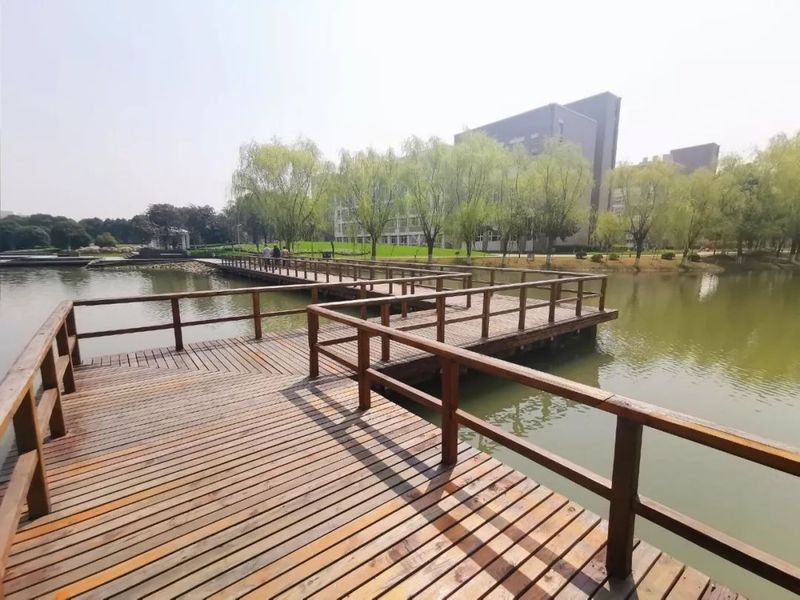 围栏及桥身以实木铺设,横跨于思源湖之上,连接着图书馆与明文苑,是校内最具风光的桥。