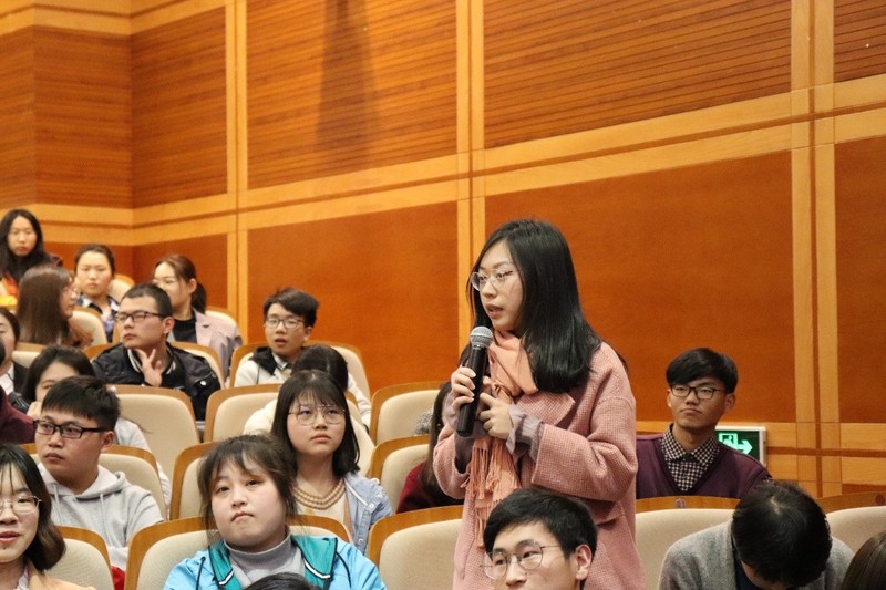 在互动环节中,同学们纷纷提问,与嘉宾交流讨论。本次活动旨在更好地帮助大学生了解中国国情、培养国际视野、拥有家国情怀。