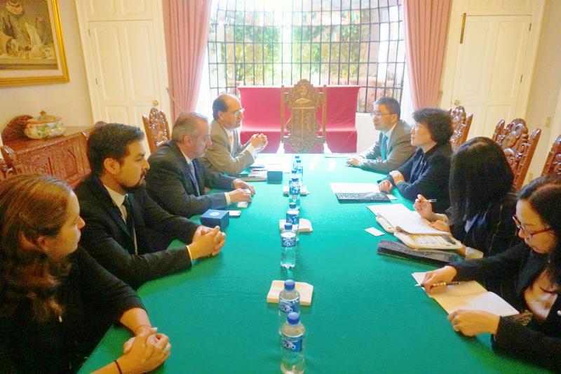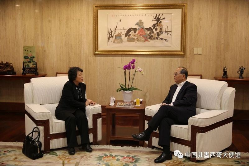 当天下午,代表团一行在中国驻墨西哥大使馆受到了邱小琪大使的热烈欢迎。杜慧芳向邱小琪汇报了我校与墨西哥高校合作的情况和取得的成绩,表达了在人才培养和中墨人文交流等方面进一步开展合作的意愿。邱小琪对我校与拉萨尔大学多年的合作给予了充分肯定,并向代表团介绍了墨西哥高等教育以及中墨关系发展近况。他表示,将大力支持并积极推动华理与国立自治大学的交流合作。中国驻墨西哥大使馆公使衔参赞林棘、参赞管亚培和杨红等陪同会谈。