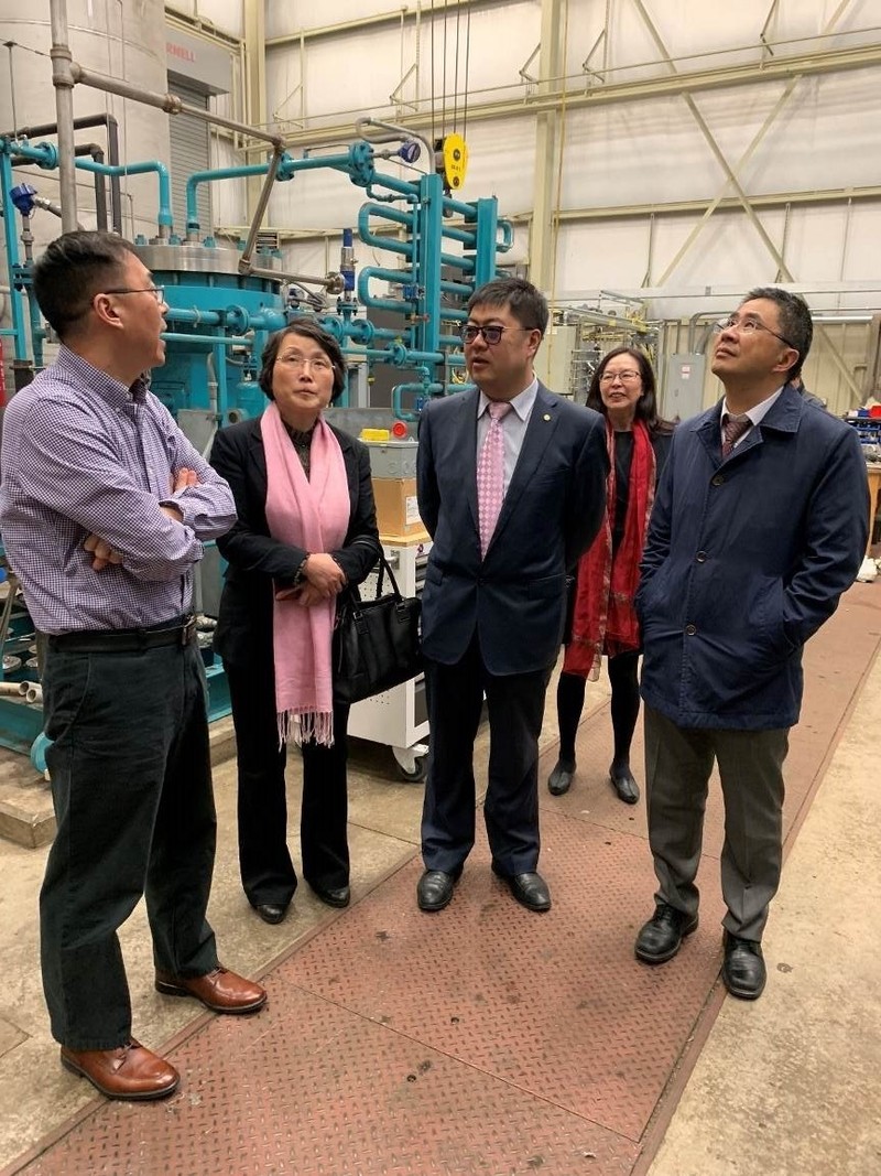 随后,代表团前往位于肯塔基大学校园10公里之外的应用能源研究中心,同该中心副主任刘坤磊教授进行了交流。刘坤磊陪同代表团参观了水煤浆气化装置,详细介绍了装置的运营情况。杜慧芳一行还看望了正在该校访学的我校资源与环境工程学院沈中杰博士。