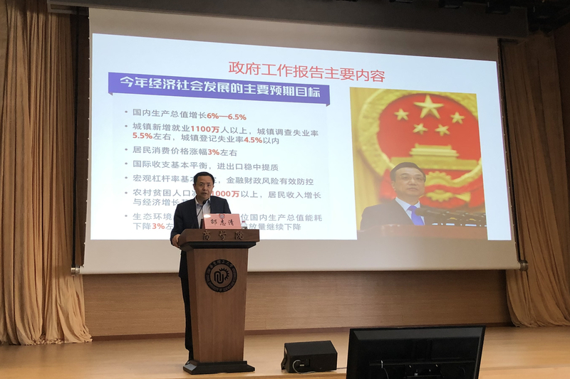 邵志清讲述了本次两会的主要议程和特点、习近平总书记和中央有关领导同志重要讲话精神、政府工作报告要点等几方面内容。结合上海市的发展实际和未来将面临的机遇与挑战,他介绍了上海市三项新的重大任务、四大战略支撑、区域协调发展等两会关注的发展问题。报告会中,邵志清还为大家分享了参加全国两会的心得体会。报告主题鲜明、内容丰富、精彩生动,让与会师生对于两会精神有了全面的认识和更为深刻的理解。