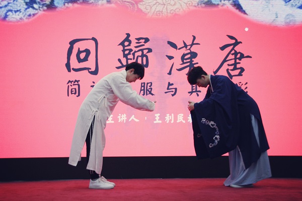 图说:主讲人王利民教授身着汉服登上讲台 采访对象供图(下同)