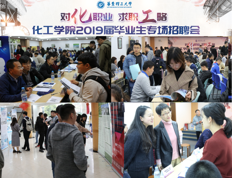 为进一步推进2019届毕业生更高质量和更充分就业,拓宽毕业生就业渠道,化工学院主动对接企业需求,搭建毕业生与用人单位的交流平台。4月10日下午,在校就业指导服务中心的指导下,化工学院2019届毕业生专场招聘会在逸夫楼演讲厅举行。上海华谊新材料、花王化学、浙江物产化工集团宁波公司、普莱克斯、中船重工七一一研究所等50余家企业参加招聘会,提供了近300个工作岗位。