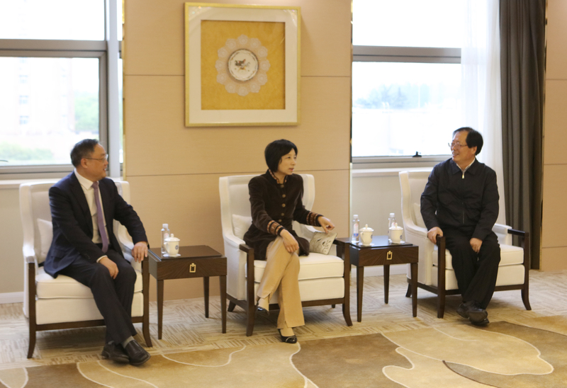 会前,华东理工大学校长曲景平与成旦红、徐枫进行了交流。