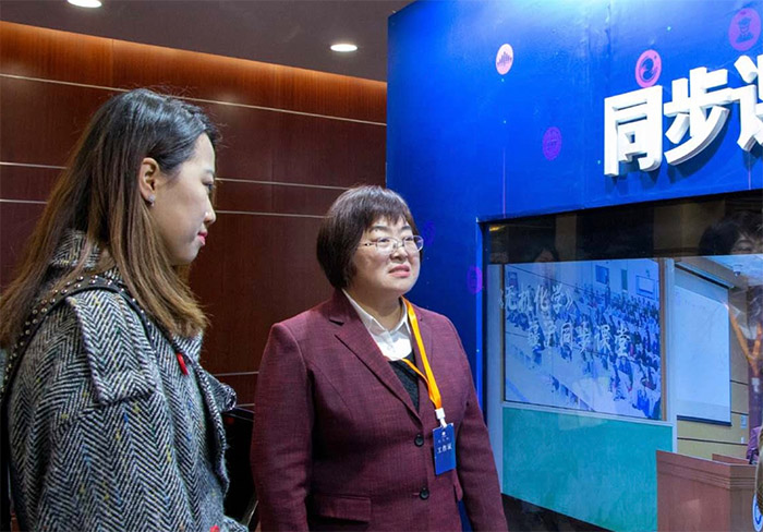 在9日举行的中国慕课大会上,华东理工大学化学系教授徐志珍在大会教学场景互动区为参会者展示了“慕课西行”在线教学项目。