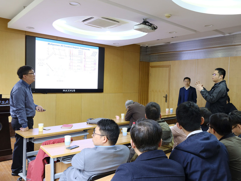 郭绍伟分享了他与华理的友谊。在过去的十几年里他曾多次到访我校,见证了华理的发展。报告中,郭绍伟重点介绍了在纳米孔洞材料设计方法方面的思路和成果,并详细地讲解了相关研究的发展历程。郭绍伟对大孔、介孔、微孔等不同类型孔洞材料的设计原则进行了深刻的阐述,并就在无模板剂、无需煅烧的有机孔洞材料制备方面的工作及发展前景进行了展望,开阔了与会师生的学术视野。