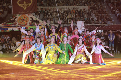 刚柔并济的维吾尔族舞蹈《刀郎》,神秘古老的《满族婚礼》,壮族的《竹竿舞》,朝鲜族歌舞表演《阿里郎》,蒙古族独舞《梦中的额吉》……异彩纷呈的表演引来了师生经久不息的掌声。