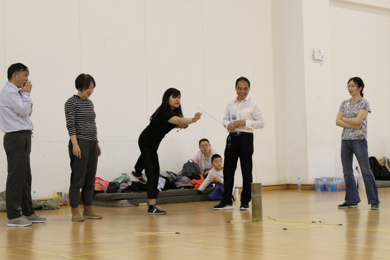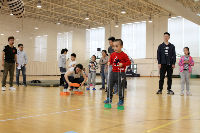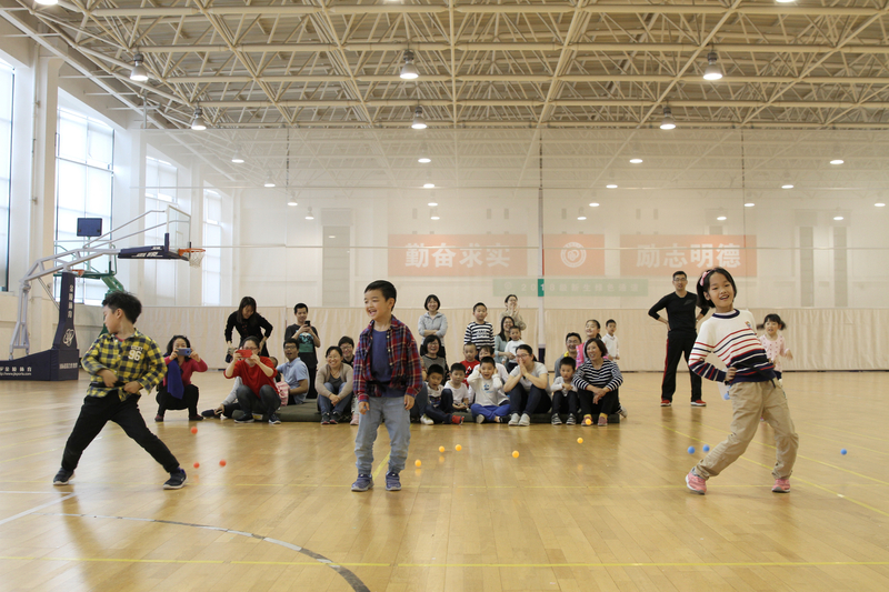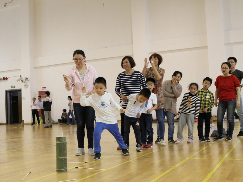 拓展活动分为拓展团建和户外参观两个环节。上午,在跟随教练做完热身活动后,亲子拓展及成人团建活动在奉贤校区体育馆副馆精彩上演。摸石过河、电臀达人、投壶……大家默契配合投入到紧张而有趣的拓展活动中,一个个项目不但考验着参与者的耐力,更激发了大家的无限热情,鼓励声、掌声、笑声不时在场内响起。