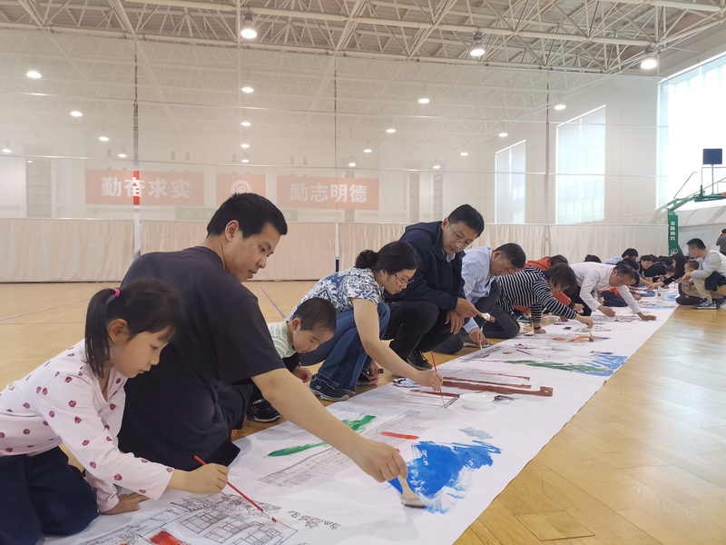 挥奋进之笔,描美丽校园。在拓展活动的最后环节,现场的教职工及其子女以“百米长卷绘华理”一起为学校送上了独特的祝福。