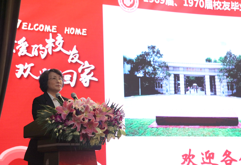 校党委书记杜慧芳出席大会并讲话。她热烈欢迎毕业50周年的前辈学长重回校园,忆青春、叙友谊、话人生。“五十年沧桑岁月,五十年风雨征程。你们始终不忘初心,勤奋求实,将个人前途同国家的命运紧密相连,为祖国的建设作出了卓越的贡献。你们为祖国的强盛呕心沥血,贡献了自己的青春年华,是我们学习的榜样。”杜慧芳高度赞扬了两届校友在祖国发展过程中作出的卓越贡献。据统计,在两届校友中,全国人大代表、政协委员2人,获全国五一劳动奖章1人,全国优秀企业家金球奖1人,全国劳动模范1人,全国“三八”红旗手1人,国家教学名师1人,获国务院特殊津贴10人,担任各级人大代表、政协委员,获得省级以上优秀党员、省部级以上科技奖励的多达200余人次。
