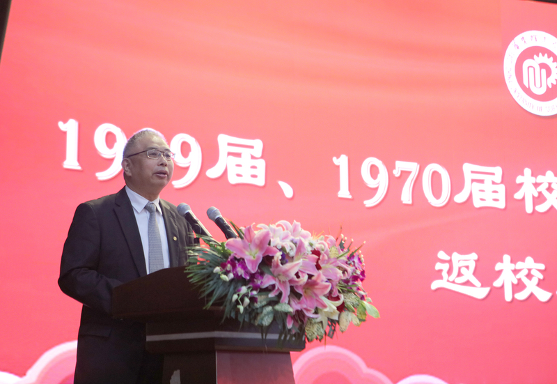 校长、校友会理事长曲景平首先致欢迎辞。他代表学校热烈欢迎1969、1970届校友50年后重返母校,衷心感谢校友们50年来对学校各项事业发展的鼎力支持,并表示,学校将秉承"勤奋求实 励志明德"的校训精神,继承和发扬优良传统,争取更大光荣,在一流大学建设的征程中,砥砺奋进,再铸辉煌!