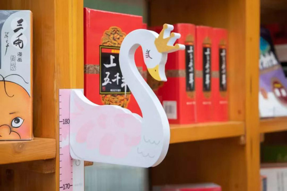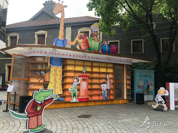 位于思南公馆重庆南路广场的思南童书快闪店,提前为孩子们送上“六一”礼物。孩子们所熟悉的三毛、大头儿子小头爸爸、长颈鹿、鳄鱼将快闪店打扮成一个富有童趣的空间。