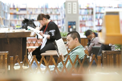 昨天世界读书日,市民在上海书城安静阅读。 均 本报记者 蒋迪雯 摄