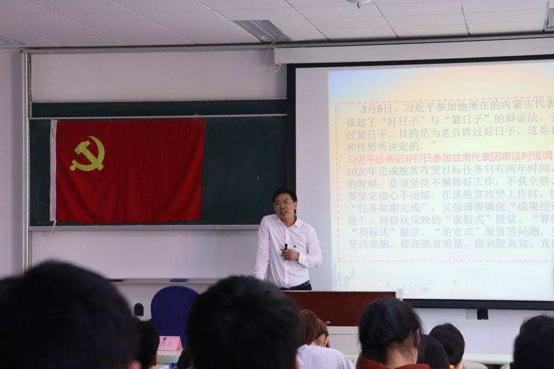 李作言博士一方面为在座的入党积极分子解读全国两会精神,让同学们对总书记有关生态文明建设、脱贫攻坚、乡村振兴战略和创新创业创造等方面的论述有了更加深刻的认识与思考。另一方面,围绕党史,他从“喷薄的岩浆”“合作与战场”“突破与火种”“开裂的坚冰”和“思想启示”五个方面,介绍了中国共产党建党98年来艰苦卓越的光辉历程,希望同学们坚定理想信念,增强家国情怀,在党的引领下,不断向党组织靠拢,努力成长为能够承担中华民族伟大复兴历史使命的时代栋梁。