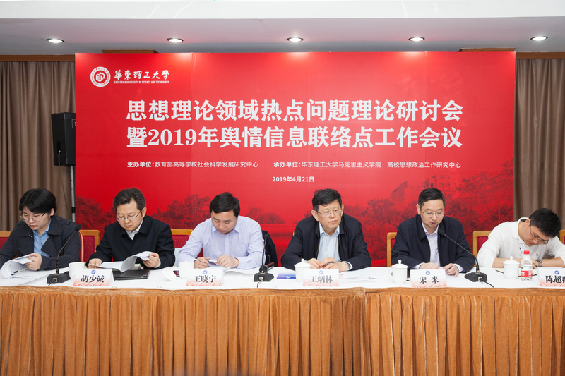 为准确把握当前思想理论领域最新动态动向,做好2019年舆情信息分析研判工作,4月21日,思想理论热点问题理论研讨会暨2019年舆情信息联络点工作会议在我校召开。此次研讨会由教育部高等学校社会科学发展研究中心主办,我校马克思主义学院、高校思想政治工作研究中心承办。教育部社科中心主任王炳林、我校党委副书记宋来出席会议,来自北京大学、清华大学、复旦大学等高校宣传部、马克思主义学院及舆情信息工作部门的30多位专家学者,我校马克思主义学院党政班子成员等参加研讨。开幕式由教育部社科中心综合信息处副处长王晓宁主持。
