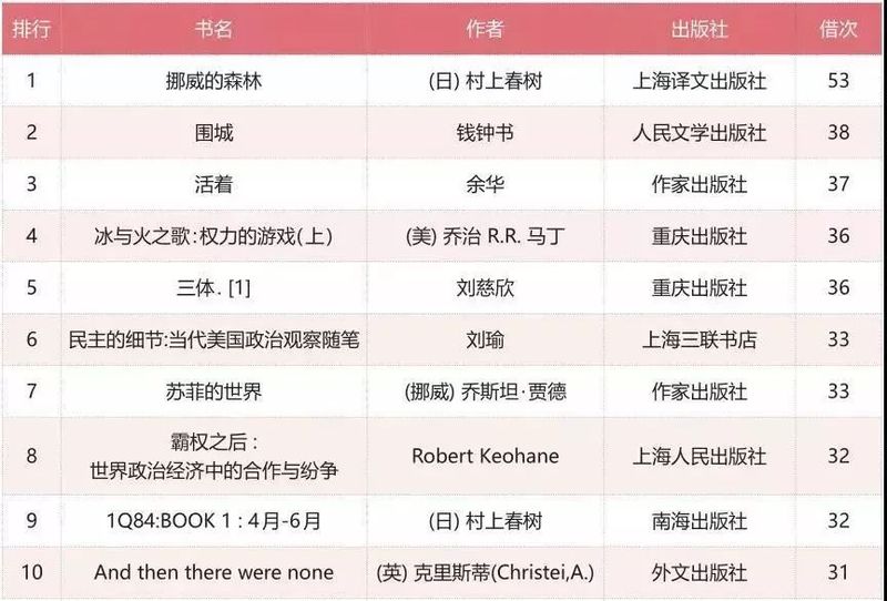 今天是世界读书日~2018年刚刚过去。小伙伴们想知道在过去的一年里,沪上各大高校学子们都在看什么书吗?学校图书馆里哪些书的借阅量最高?快来和小布一起看看,22所高校你不知道的2018图书馆借阅“大数据”吧!看看有没有你喜欢的那本书呀~