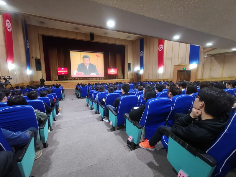 我校党委中心组(扩大)学习在逸夫楼报告厅举行。校领导、党委中心组成员、中层正职领导干部及师生代表集中收看了大会现场直播,学习习近平总书记在大会上的重要讲话精神。