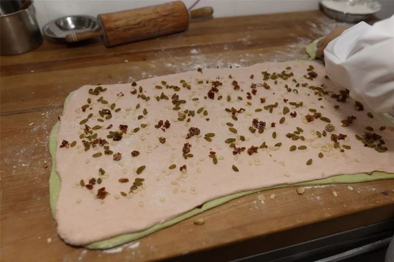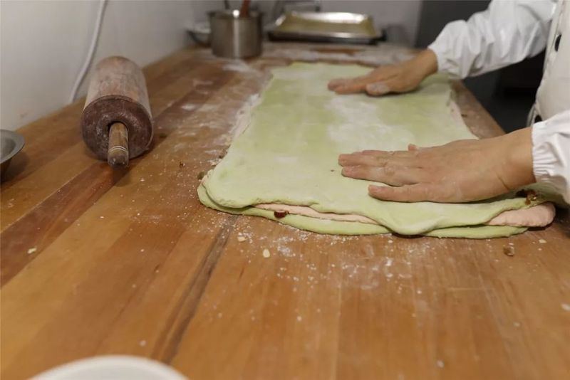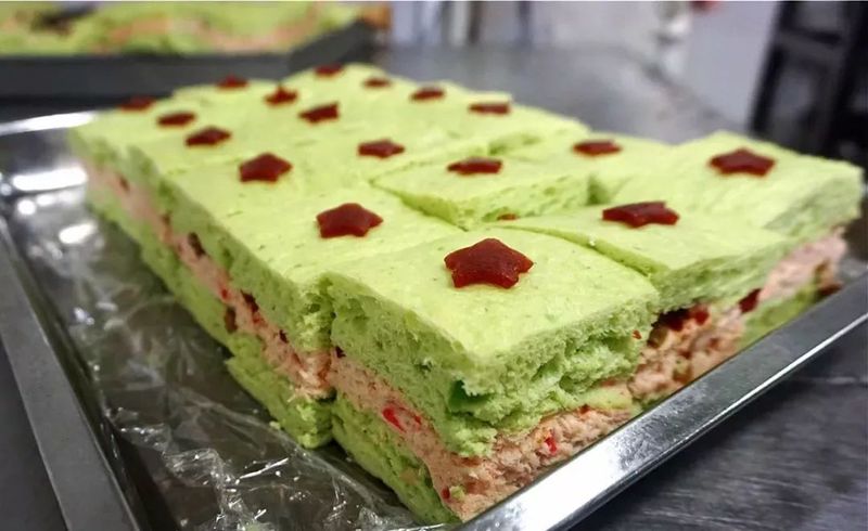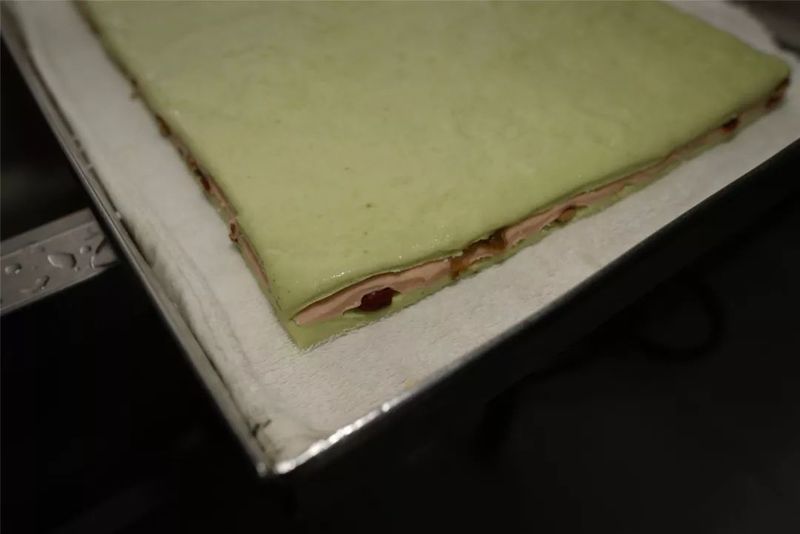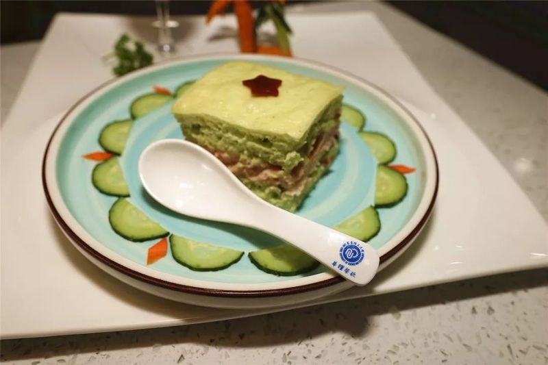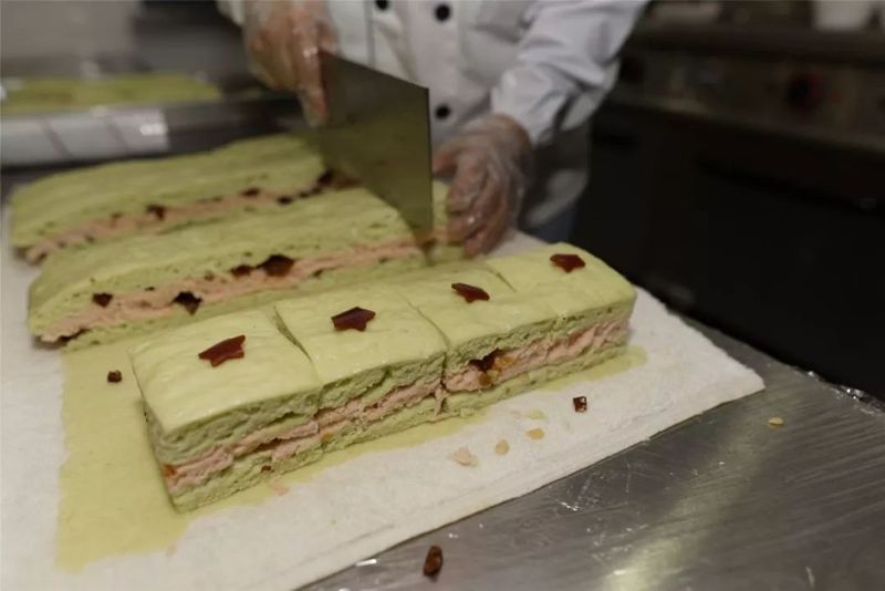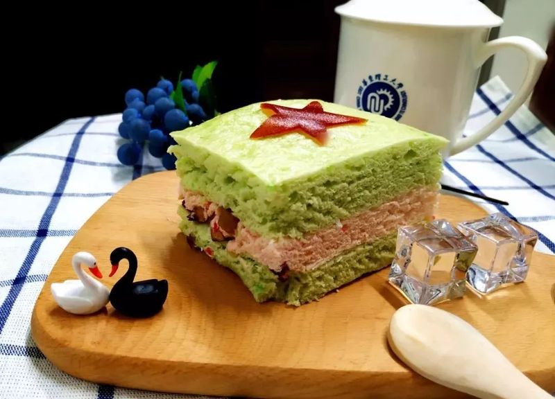 2.糕点整体呈青绿色,中间一层为红色,象征青年有一颗红亮的心。