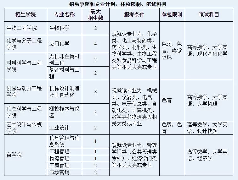报考有体检限制要求的专业的考生在面试时由该校安排体检,体检受限者不能录取。体检限制详见附件。