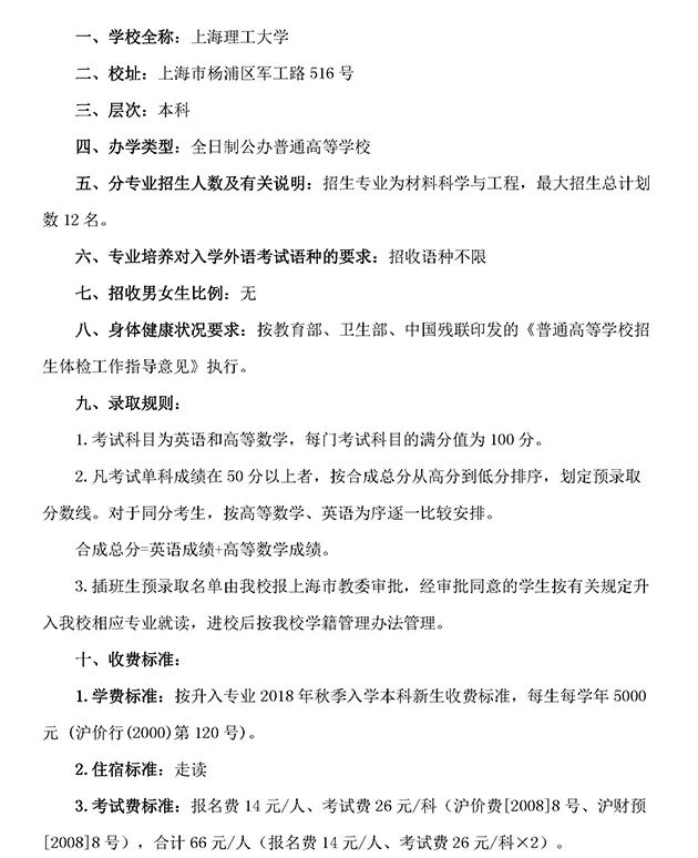 5.若教育部或有关部门2019年相关规定有变化,则按新规定执行。未尽事宜按教育部、上海市教委和该校的有关规定执行。
