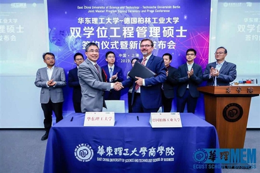 5月8日,由华东理工大学商学院举办的中德双学位工程管理硕士(MEM)新闻发布会举行。发布会现场,正式签署了华东理工大学与德国柏林工业大学联合创办中德双学位工程管理硕士合作协议。