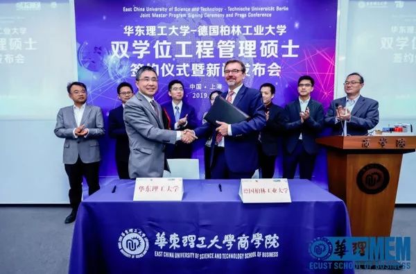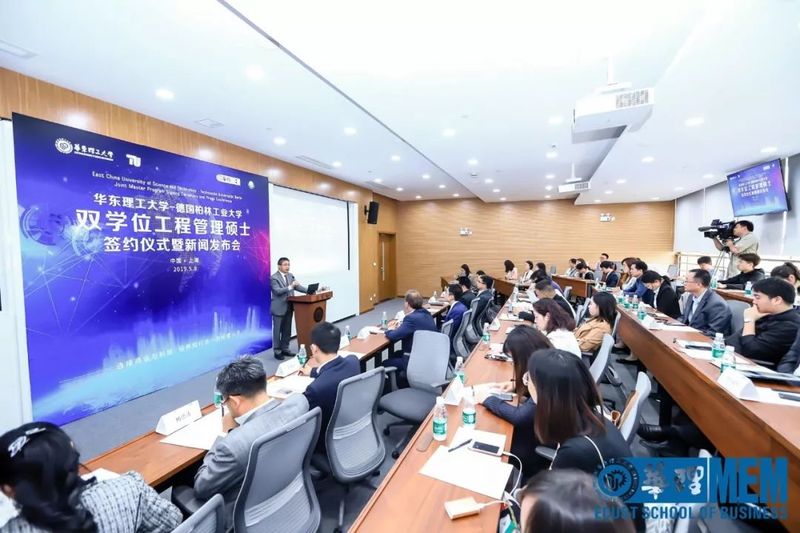 5月8日下午,由华东理工大学商学院举办的中德双学位工程管理硕士(MEM)新闻发布会在商学院大楼正式举办。发布会现场,正式签署了华东理工大学与德国柏林工业大学联合创办中德双学位工程管理硕士合作协议。作为国内首个双学位MEM项目,在华理MEM乃至中国的MEM项目的发展历程中有着开创性的意义和价值。