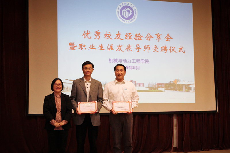 5月6日晚,机动学院优秀校友经验分享会暨职业生涯发展导师授聘仪式在奉贤校区敬贤堂举行。阿特拉斯·科普柯(上海)贸易有限公司总经理、机动学院1993届校友刘宇镝,阿特拉斯·科普柯(上海)贸易有限公司销售经理、机动学院2000届校友赵春明受邀为学院本科生作了职业生涯经验分享,并受聘为学生职业生涯发展导师。机动学院党委副书记杨倩出席活动并致辞,学院本科生辅导员、大一至大三学生参加。