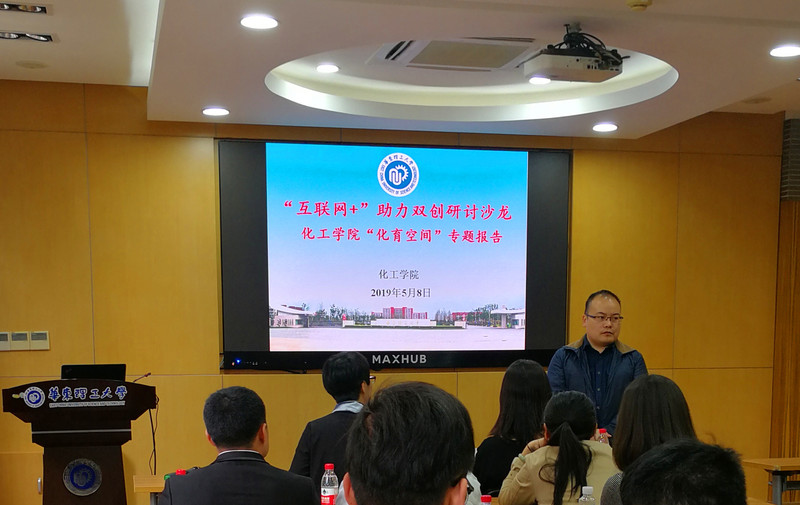 5月8日下午,“互联网+”双创研讨沙龙暨化工学院“化育空间”专题报告会在实验十六楼110室举行。报告会邀请“互联网+”大赛评委、上海市EFG基金评委、锴一投资合伙人顾礼华女士以及第四届中国“互联网+”大学生创新创业大赛国赛银奖团队——华航复材团队作报告。我校创新创业教育中心副主任司忠业出席会议,化工学院党委副书记高艺霞主持会议。
