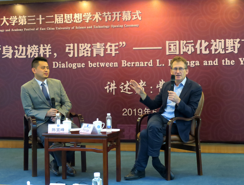 5月14日上午,一场特殊的对话“身边榜样,引路青年——国际化视野下的科研对话”在我校徐汇校区逸夫楼演讲厅举行。本场活动正值五四运动一百周年之际,邀请2016年诺贝尔化学奖获得者、我校费林加诺贝尔奖研究中心外方主任费林加教授作为讲述者,与华理青年科研工作者进行“零距离”的科研对话。活动通过费林加教授的亲身讲述,带领现场青年科研工作者一起感悟国际合作下的科研魅力和追逐梦想的学术精神。