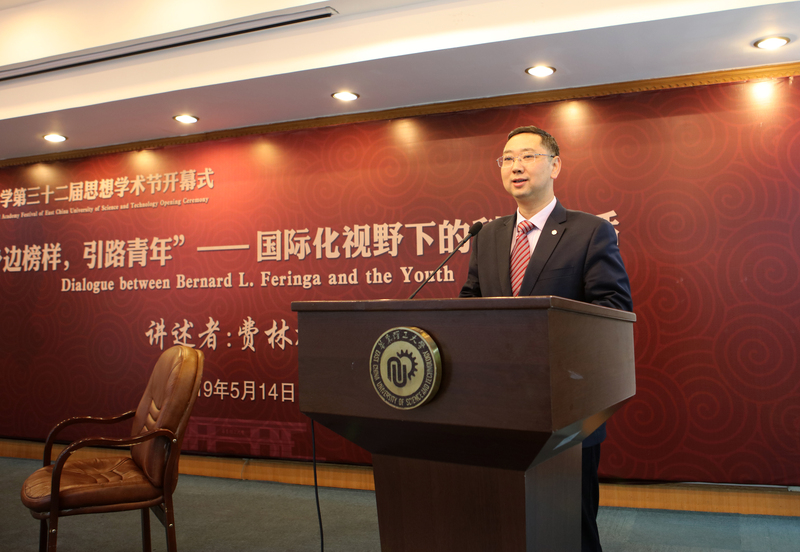 宋来在致辞中感谢费林加教授在百忙之中抽出宝贵时间与华理的青年师生们进行一场思想的碰撞、科研的对话,希望在场的青年师生抓住这次和大师“零距离”学习交流的宝贵机会,培育国际化视野,对标国际前沿,通晓国际规则,传递中国声音,努力在国际舞台上贡献华理智慧和华理力量,把自己培养成为祖国建设的有用之才、栋梁之材,为实现中国梦增添强大的青春能量。