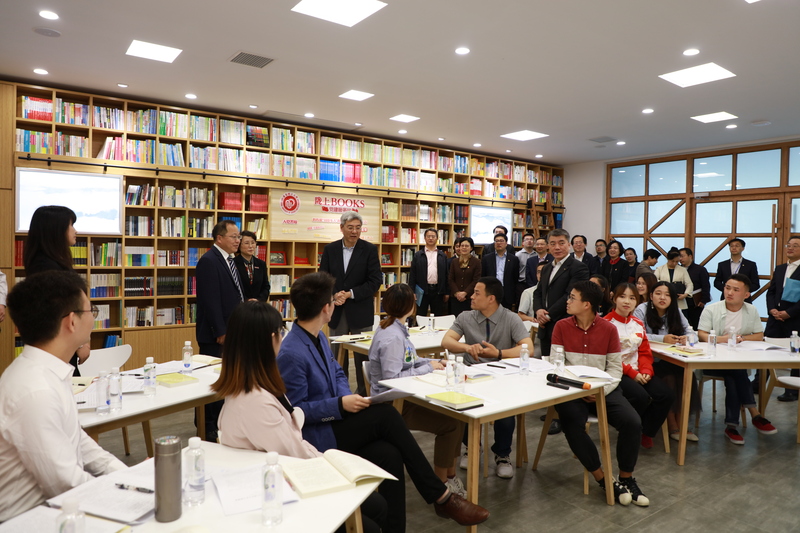 在党建共享空间,尹弘指导“习近平新时代中国特色社会主义思想研究会”学生社团学习习近平总书记在纪念五四运动100周年大会上重要讲话精神交流会。