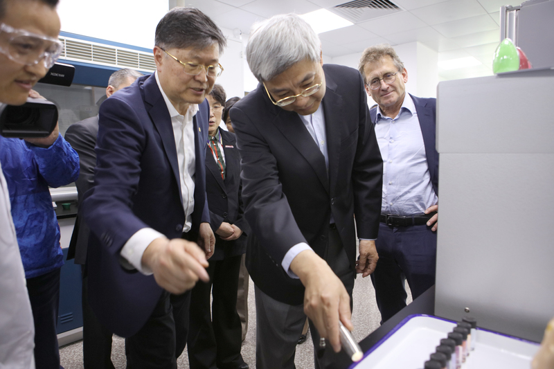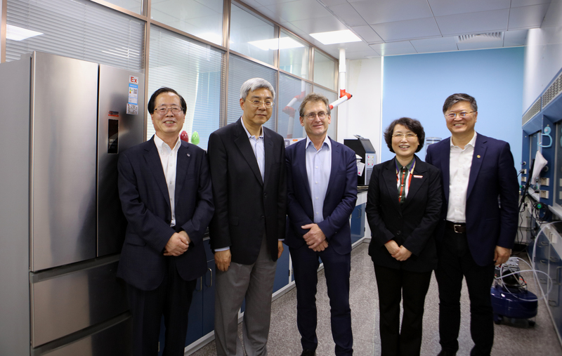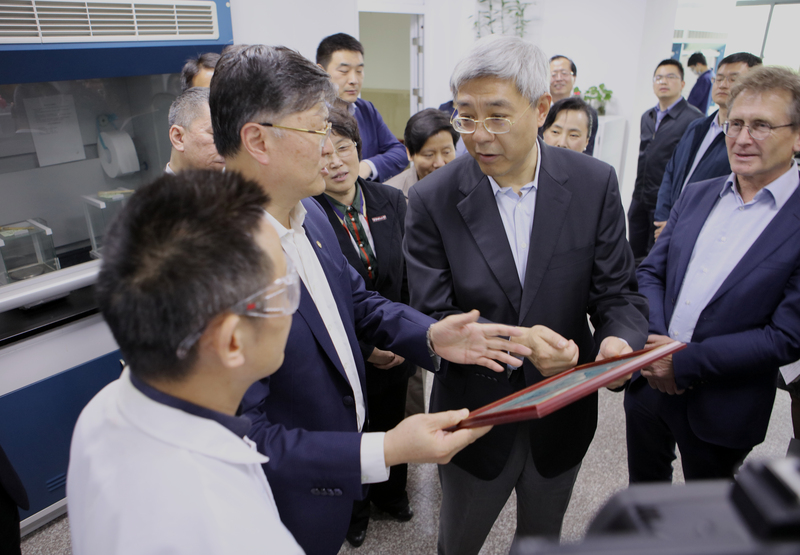 尹弘与大家亲切交谈,特别关心费林加院士在沪开展工作的情况,对诺奖中心的工作给予肯定。