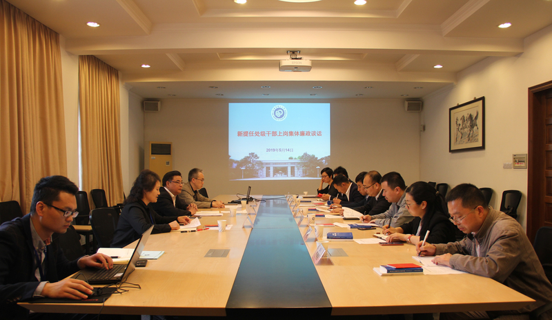 5月14日下午,学校组织2019年第一轮新提任处级干部集体廉政谈话。校党委副书记、纪委书记沈志超对8位干部提廉政要求,纪委副书记柴华介绍廉洁廉政相关规定。会议由纪委办公室副主任苏建玲主持。