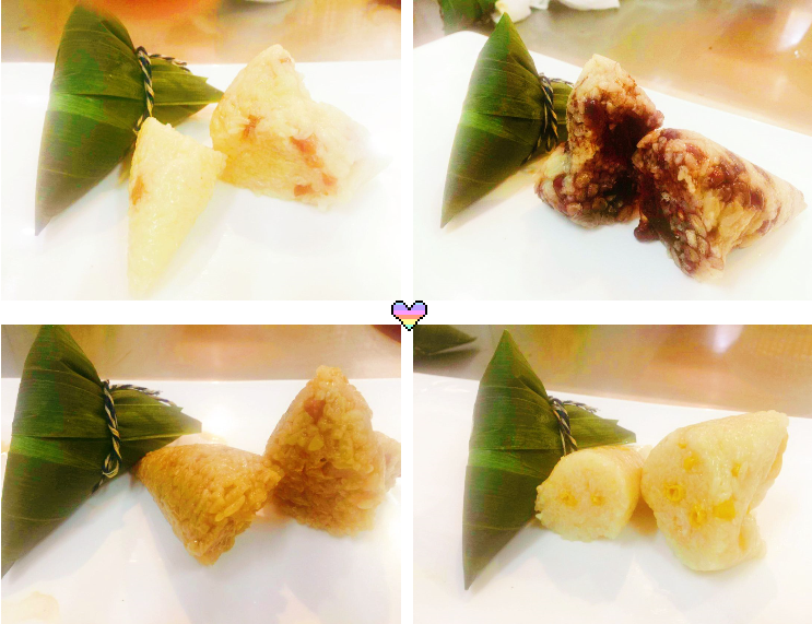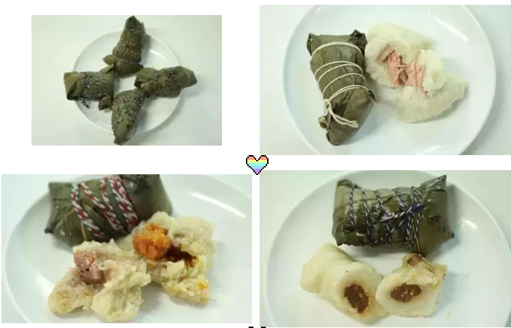 粽子种类:枣泥棕、豆沙棕、鲜肉棕、咸蛋黄鲜肉棕