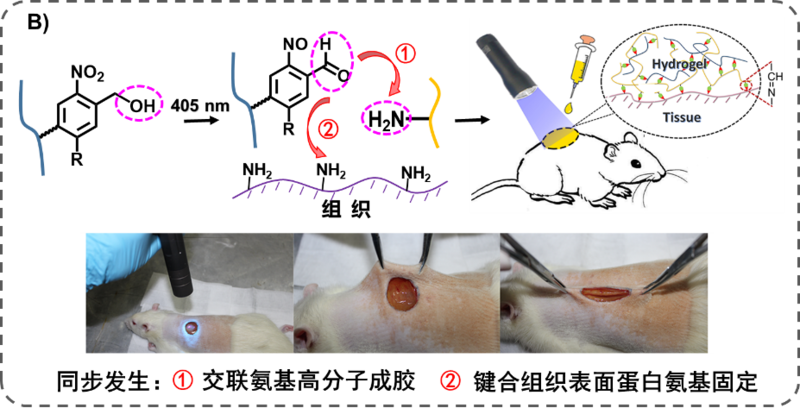 图B:建立具有组织粘附与整合特性的光原位凝胶技术