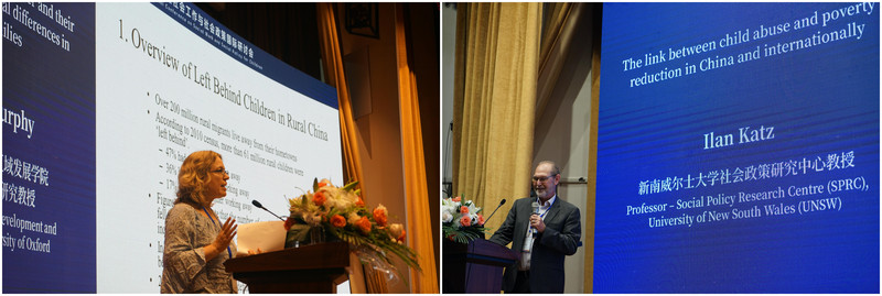 在大会主题报告中,Rachel Murphy教授等11位学者分享了各自的研究发现。来自牛津大学的Murphy教授是国际著名的中国研究专家,讨论了儿童性别对留守儿童家庭的差异化影响。新南威尔士大学Ilan Katz教授讨论了“儿童虐待与减少贫困”之间的关系等。纽约大学Darcey Merritt副教授分享了在美国如何通过社工机构的帮助,让家长在育儿过程中了解他们所处的环境,减少少数族裔儿童在社区中目击和遭受暴力情景后的创伤影响。中国社会政策专业委员会副理事长、南京大学林闽钢教授分析了我国“70年儿童福利发展的路径与议题”。中国社会工作教育协会副会长、浙江师范大学刘梦教授在“儿童的可持续发展”中分析了我国卫健委“妇女发展纲要和儿童发展纲要”的指标体系等。另外,我校社会学院李欣副教授、谈子敏博士后也作了大会主题报告。