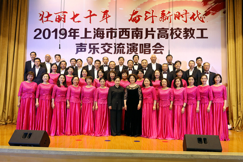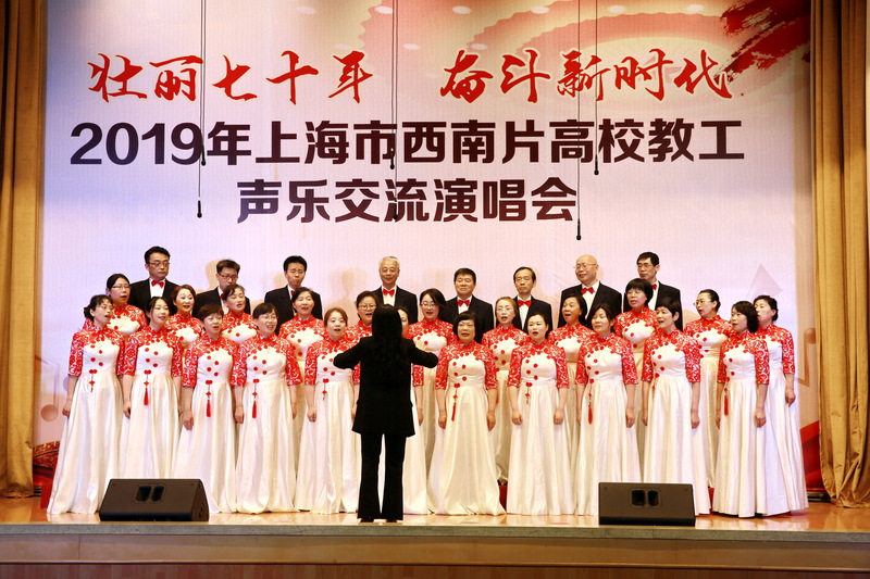 本次演唱会由上海市教育工会主办,上海市教育工会合唱协与我校工会承办。来自本市西南片的 11 所高校、近 300余名教职工通过小合唱、小组唱等形式歌唱祖国,庆祝中华人民共和国成立70周年,充分展示上海高校教职工的风采。华东理工大学、上海交通大学、华东师范大学合唱队分别获得本次交流演唱活动的第一、二、三名。