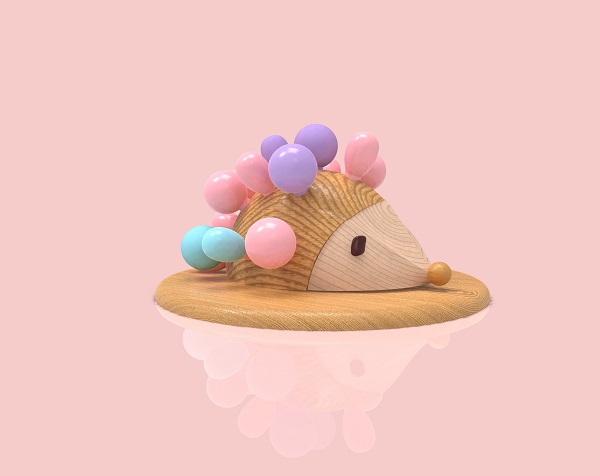 从外观形态的角度,自闭症儿童很难理解具象的东西,比如人的脸、一辆车,这些对于他们来说都是无法识别的乱码,但是对于抽象的东西他们却有很好的理解力,所以说在这套产品的设计中,我将刺猬的刺抽象为水滴型,来帮助增进儿童的理解。