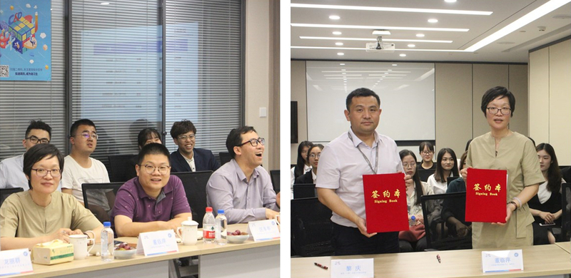 交流会上,邓琳琳介绍了建发股份的概况。黎庆对商学院到访师生表示热烈欢迎,表示华理学生在公司普遍工作踏实、勤劳实干,跟企业文化十分吻合。董临萍代表商学院感谢建发多年来与我校开展的多元合作与交流,为学生提供的实习就业指导与支持,并表示期待从管理层面和合作模式上展开更多维度的合作,进一步拓宽合作渠道,在人才培养方式、科学研究、双创平台建设以及党建等多方面实现资源共享与合作共赢。