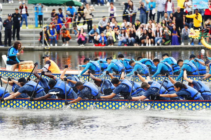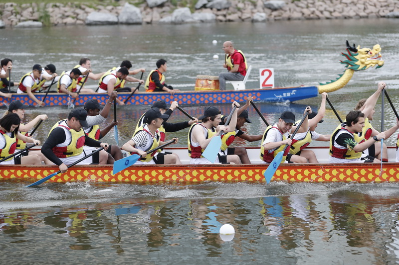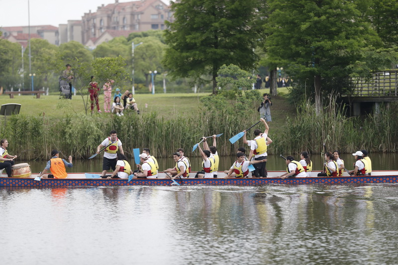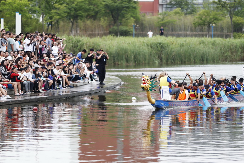 端午至,赛龙舟。6月1日,第12届上海高校外国留学生龙舟赛在华东理工大学奉贤校区通海湖畔举行,来自沪上29所高校的千余名国际留学生相聚于此,参与龙舟竞渡,体验中国传统文化。经过激烈角逐,上海对外经贸大学代表队摘得桂冠,华东师范大学代表队、东华大学代表队分获第二、第三名。和舟共楫穿涛谷,金鼓齐鸣逐浪头。比赛现场,留学生们挥桨斩浪、激情澎湃,不但在训练比赛中锻炼了体魄,增强了团队精神,结识了来自不同国家的伙伴,也加深了对于中华传统文化的理解。