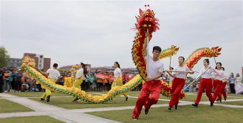 Students perform dragon dance before the race.