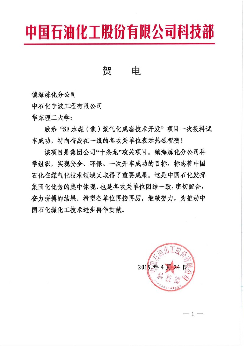 中国石化镇海炼化分公司(以下简称“镇海炼化”)SE水煤(焦)浆气化装置进入稳定生产阶段,标志中国石化和华东理工大学在煤气化技术领域取得又一重要成果。