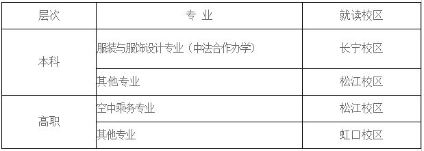 艺术类本科专业就读徐汇校区,其他本科专业就读奉贤校区;少数民族预科就读奉贤校区;高职专业就读高等职业学院长桥校区。