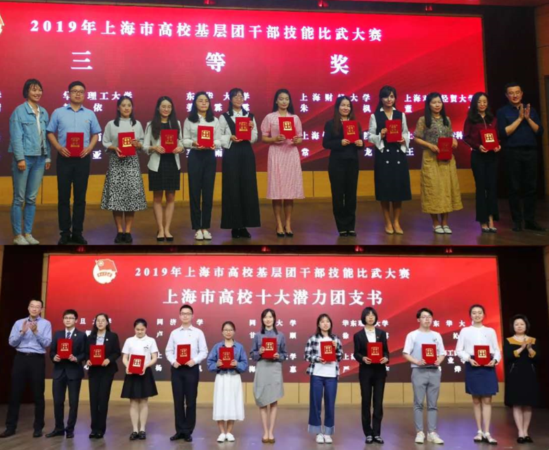 5月30日,由团市委、市教委共同主办的2019年上海市高校基层团干部技能比武大赛决赛在上海对外经贸大学举行。我校艺术学院赵依莎荣获院系团干部组三等奖,生工学院富琳桦、社会学院严任舟荣获优秀奖,商学院国贸171团支部书记徐思博同学荣获“上海市高校十大潜力团支书”荣誉称号,同时,我校获得优秀组织奖。